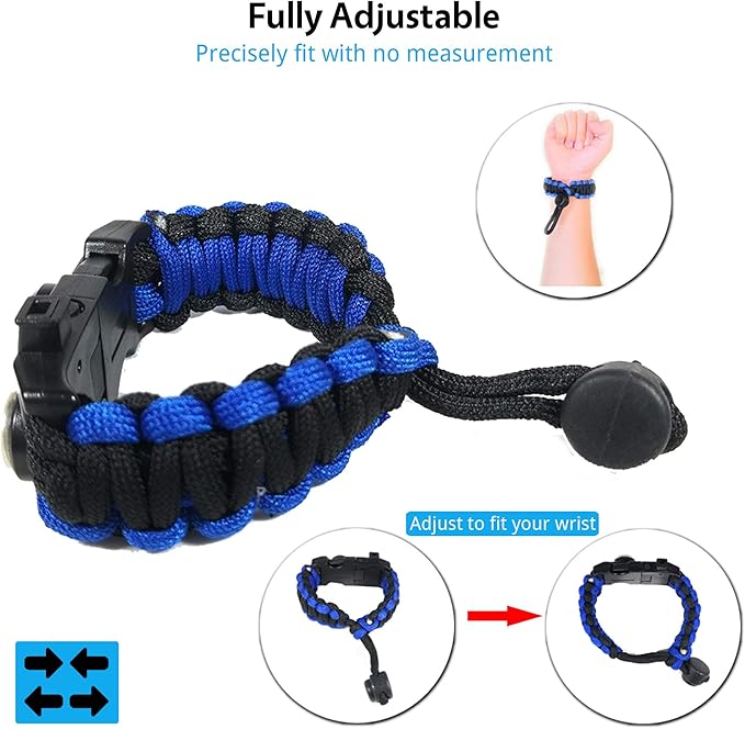 - 550 ADJUSTABLE PARACORD BRACELET - 10 feet of tactical paracord for women or men with different size wrists to be used in a variety of ways in the wilderness