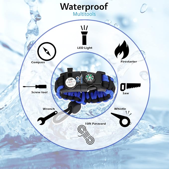 - MULTITOOLS - This survival bracelet set includes a pair of compact multi tools that fits neatly inside the buckle. The tool has screwdriver, scrapper, saw, wrench and more!