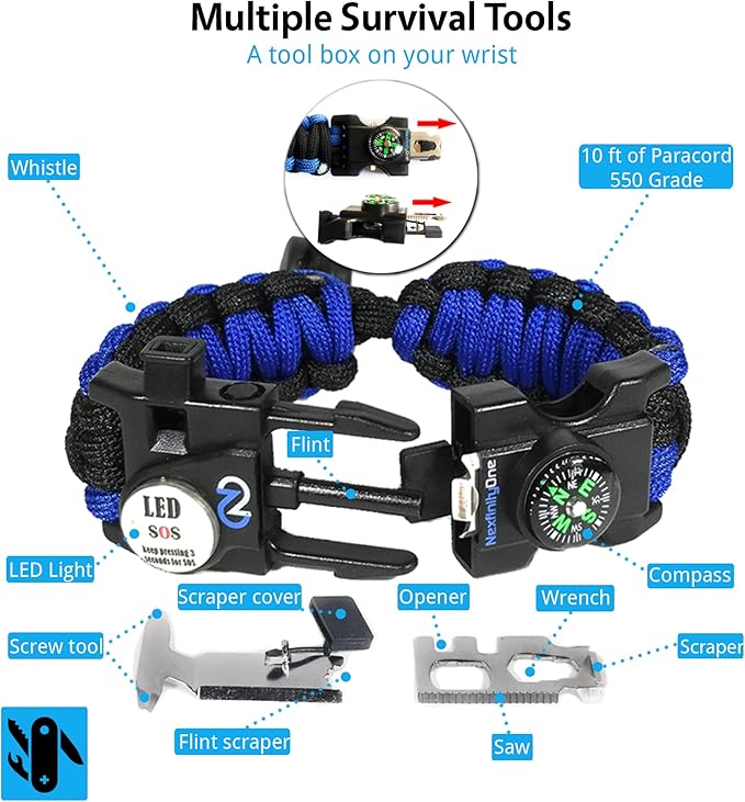 - SOS LED Light - This emergency survival bracelet has an LED light that can be used to help rescuers find you at night!