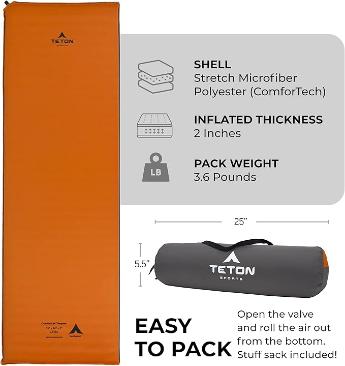 - Model Name : TETON Sports ComfortLite Regular Self-Inflating Camp Pad