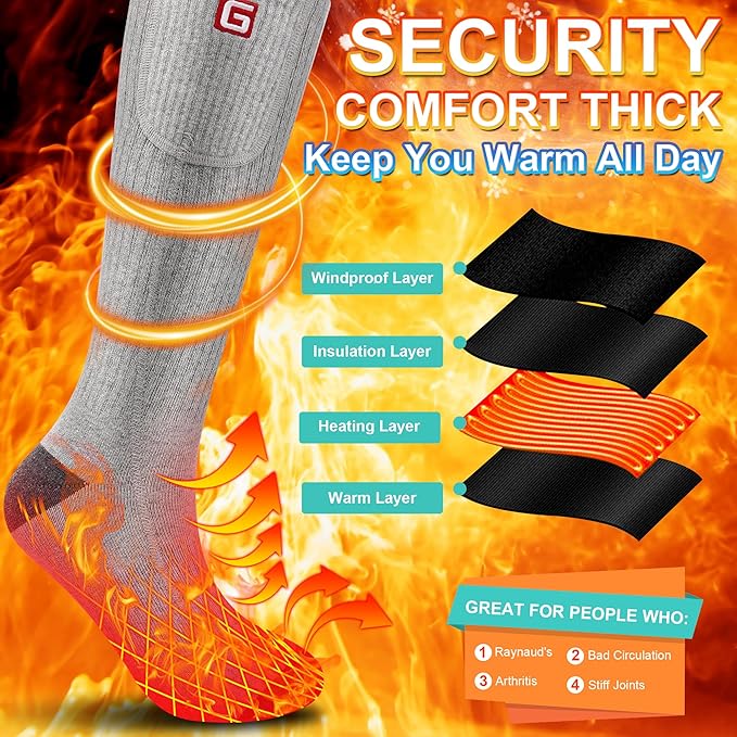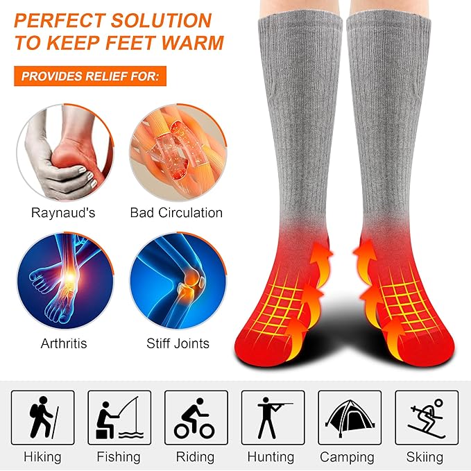 - 🔥Warm up Quickly: The electric heating element of this warm heated socks is recessed in front insteps to help focus heat in the toes to warm your whole feet. 1 rechargeable heated socks equal to several regular socks to keep you warm enough