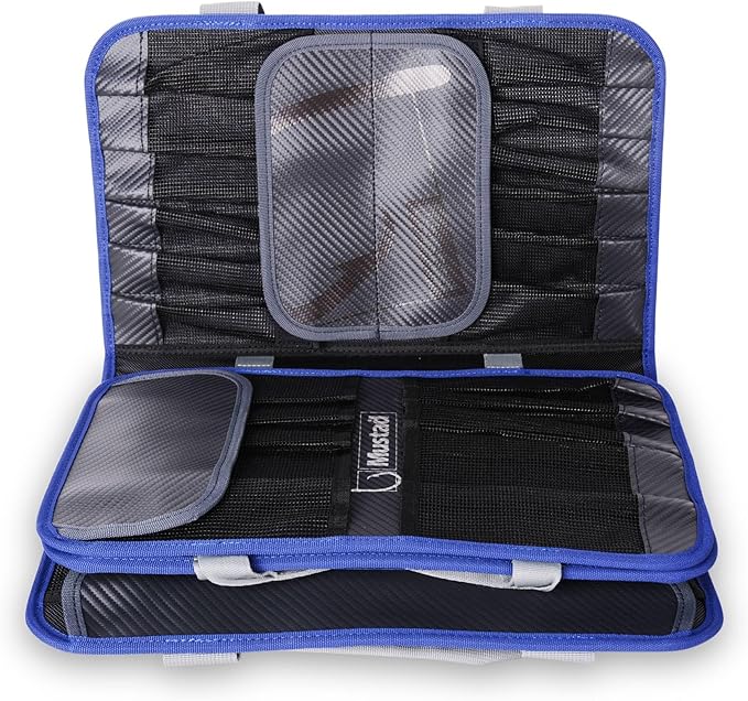 - Practical Outer Mesh Pocket: The Mustad dry Jig Pouch features many pockets for lures and jigs and an outer pocket, constructed from tough mesh for assist hook and leader material