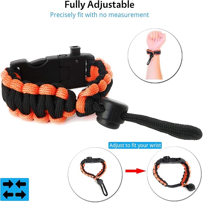 - 550 ADJUSTABLE PARACORD BRACELET - 10 feet of tactical paracord for women or men with different size wrists to be used in a variety of ways in the wilderness