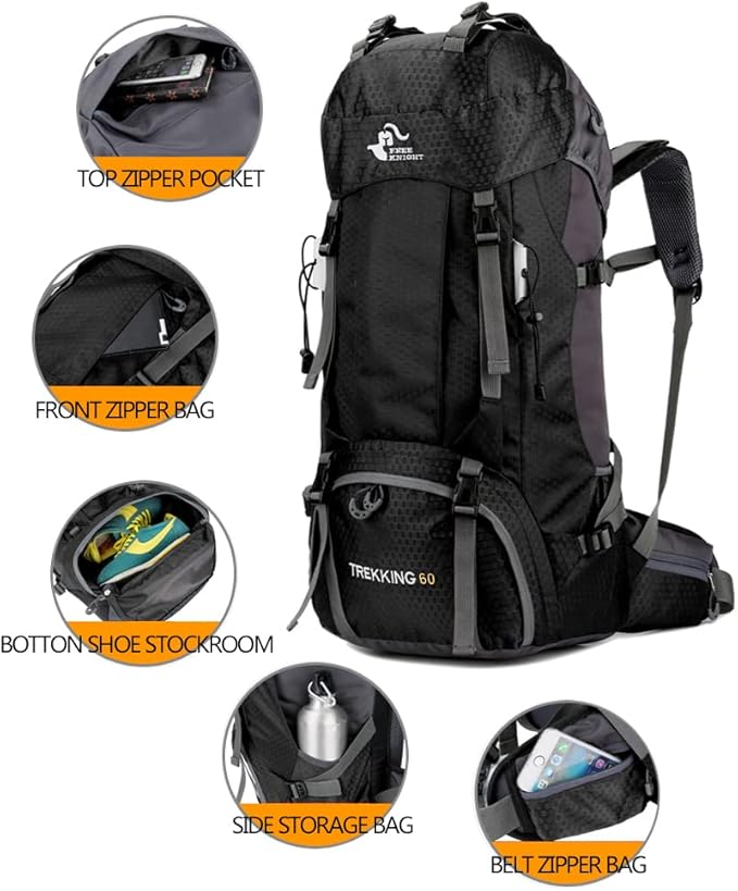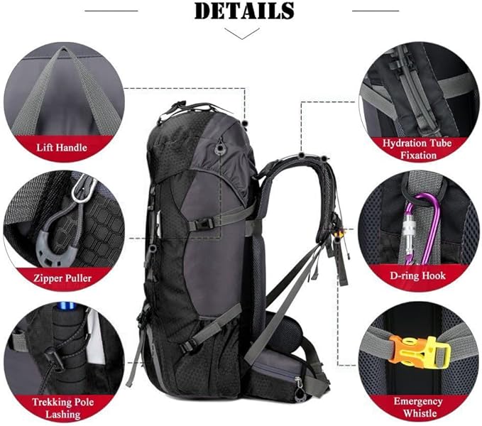 • Large Capacity & Multiple Compartment: Large capacity with a spacious main compartment and multiple pockets provide enough room for 3 or 4 day trips. Special main compartment drawstring closure design to prevent items from falling out of the backpack. With an inner pouch for a water bladder, two side pockets to carry extra water bottles. Separate shoe storage pouch to prevent items inside the backpack from getting dirty, convenient and practical. Meets most airline size requirements.