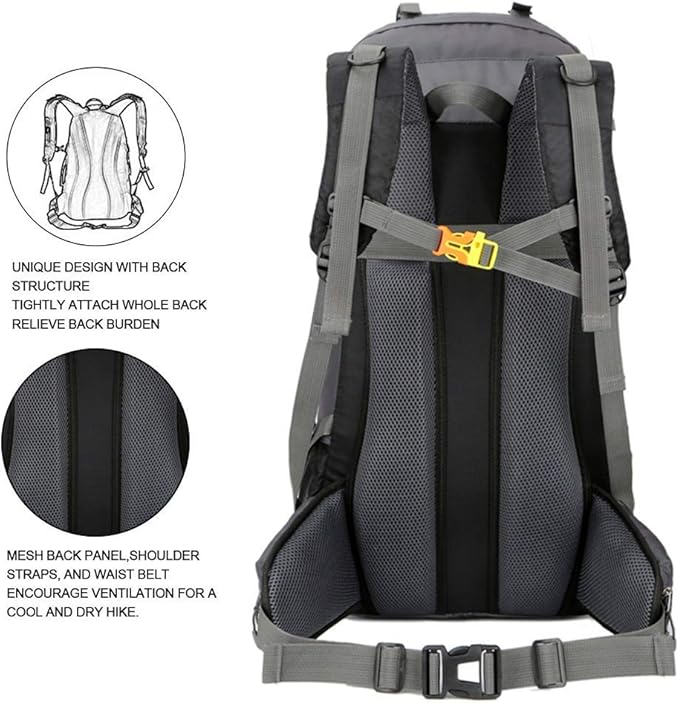• Comfortable Daypack: This climbing backpack is designed specifically for travellers. Ergonomic padded shoulder straps and back support make you feel more comfortable. Breathable mesh shoulder straps with plenty of sponge padding help relieve shoulder strain. Widened and thickened S-type shoulder straps and high elastic breathable back panel for best ventilation and load distribution. This pack has no internal or external frame.