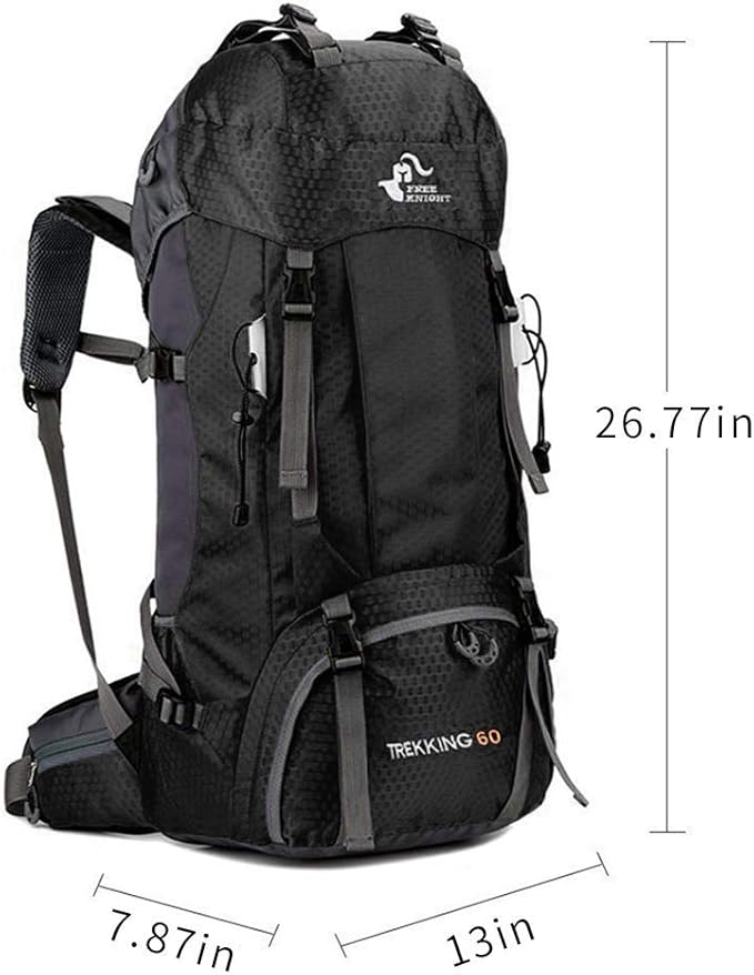 • Lightweight outdoor backpack, ultralight, only 2.1 lbs for a large 60L capacity, reducing the weight of the backpack so you can carry more other items. The maximum load bearing capacity is 33 lb. Unfolded size: 68 x 33 x 20 cm / 26.77 x 13 x 7.87 inches.
