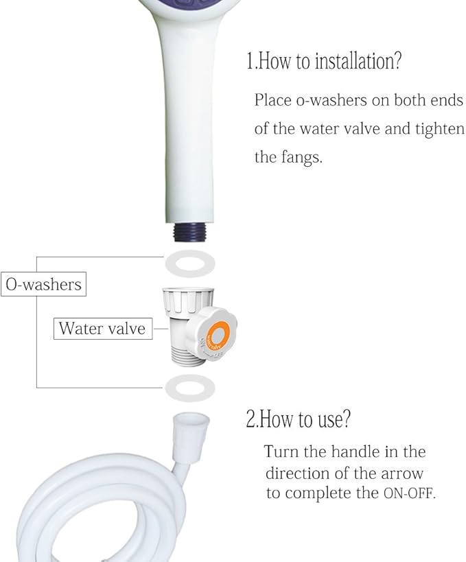 - [Water Flow Stalls Adjustable]:In the pump of the camping shower, intelligent design of two water flow stalls conversion button(Low stall 3L/Min;High stall 4L/Min), the perfect washing pressure. In the portable shower head, equipped with flow control and shut OFF valve, save water, convenient and practical