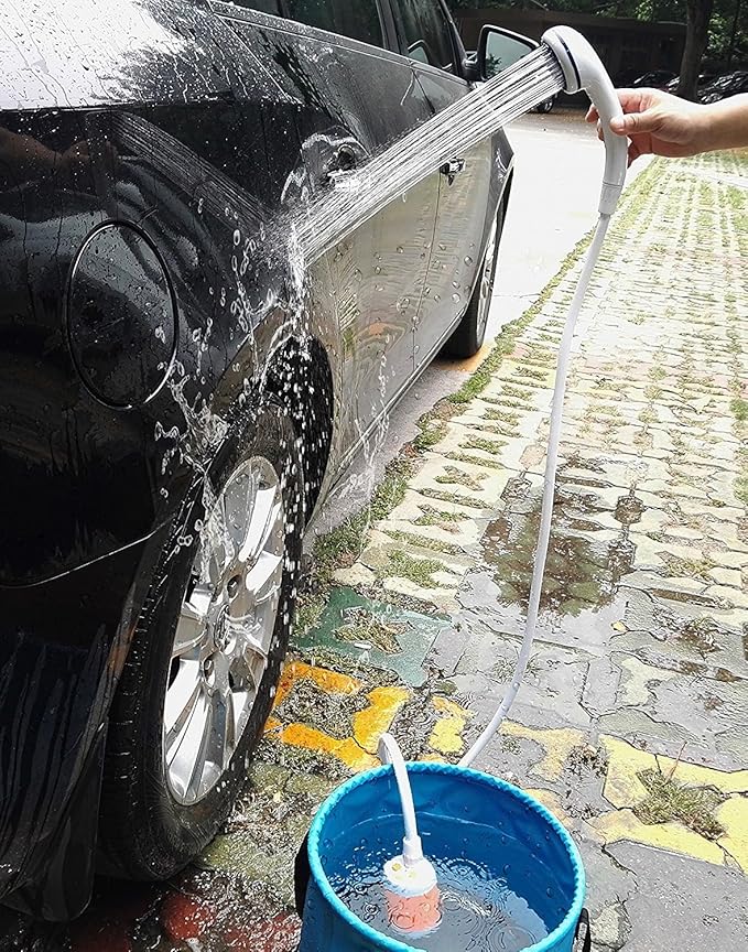 - [Multiple-uses Portable Shower]:The portable camping shower, suitable for indoor/outdoor showering, pet washing, car washing, garden watering,traveling and camping etc