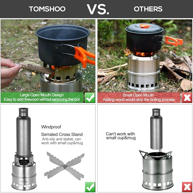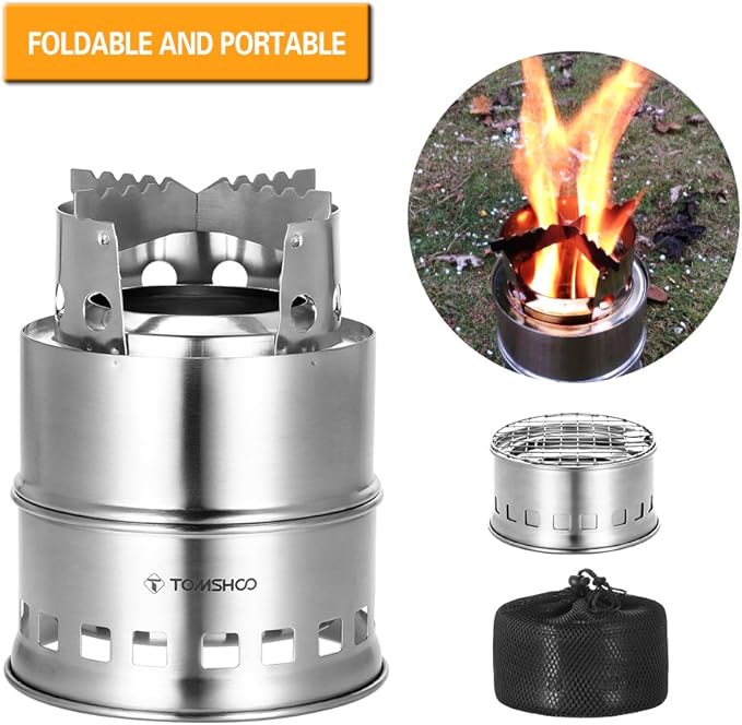TOM SHOO Camping Stove Camp Wood Stove Portable Foldable Stainless Steel Burning Backpacking Stove for Outdoor Hiking Picnic BBQ