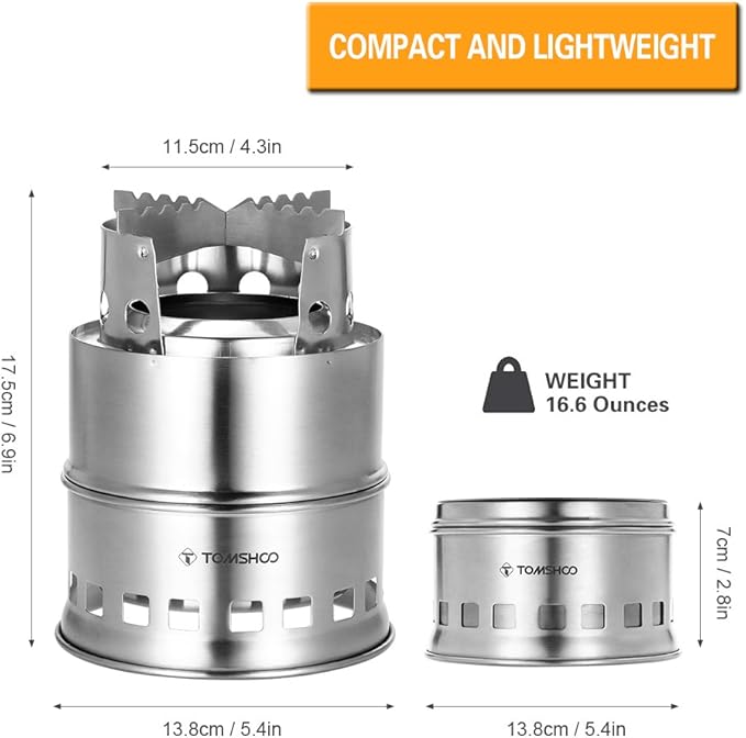 - FOLDABLE & LIGHTWEIGHT: Easily collapsible into a compact size (5.4" x 2.8") and packed in the mesh carrying sack for convenient storage. At only 1 pound, this portable wood stove is lightweight and minimizes the burden on your backpack.