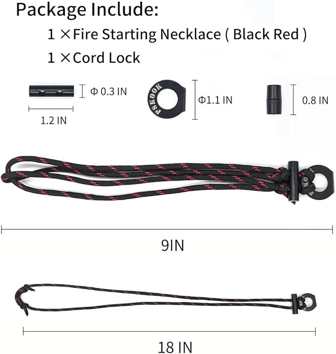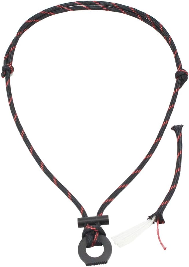 - YOU WILL RECEIVE: Package include 1 fire starting necklace(black red), 1 cord lock; even if the paracord is cut, the cord lock can reconnect the rope together to form a complete necklace