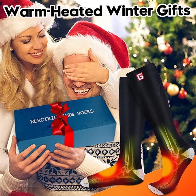 - ⛷Delicately Package&Ideal Gift in Winter: Battery operated heated socks can be used not only for outdoor sports in winter, but also provide warmth and comfort in cold temperatures. In addition, beautiful design package is perfect as Christmas, birthday and other holiday gifts. Are great Christmas/Birthday/Halloween/New Year surprise gifts for your and friends,parents and lovers. Package include: a pair of heated socks, two 3.7V rechargeable batteries, a AC charger and instruction.