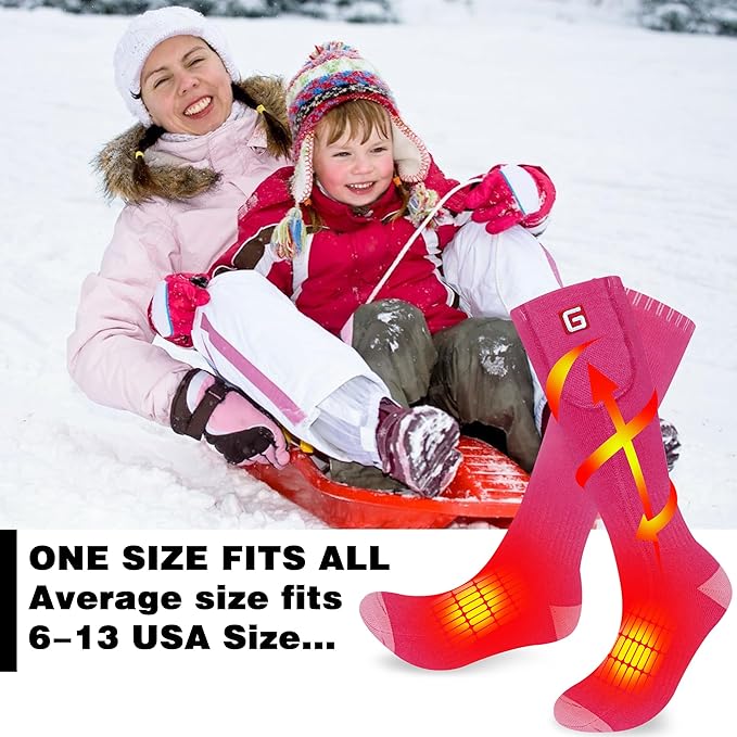 - 💕Free Size: One size fits 6-13 USA size, super elastic and stretchable for adults, men and women (6-12 USA size). Package include: a pair of heated socks, two 3.7V rechargeable batteries, a AC charger and instruction.