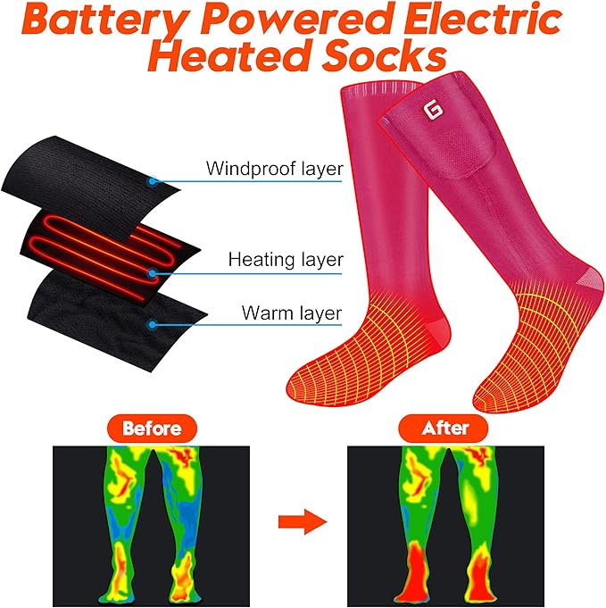 - 💕Usage Application: Heated socks Perfect for a variety of indoor&outdoor events like hunting, hiking, riding, fishing, cycling, driving, running, camping,skiing, climbing, walking etc. After received the product, if found the batteries can not work, please contact us for a replacement or refund. And If you have any issues,just feel free to contact us.