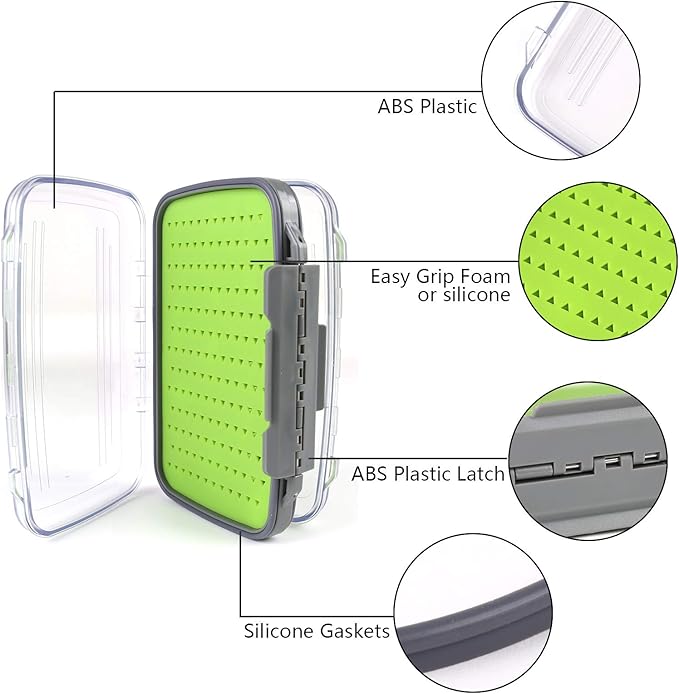 - Waterproof fly box: The latch closes firmly, and the gaskets both sides do a pretty good job of keeping out of moisture. They also float in the water and are waterproof so your flies don’t get wet