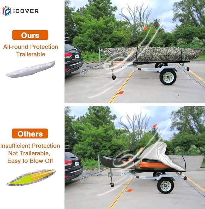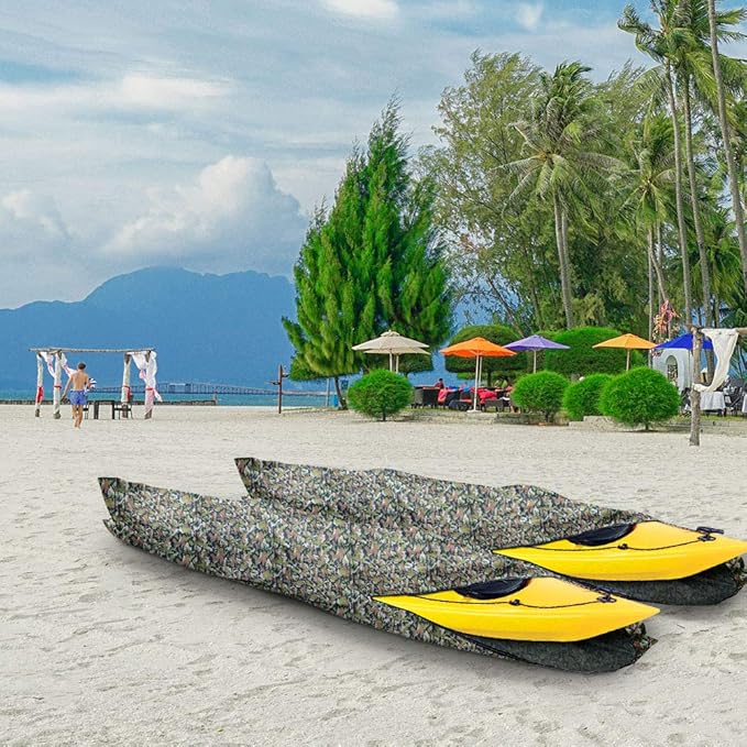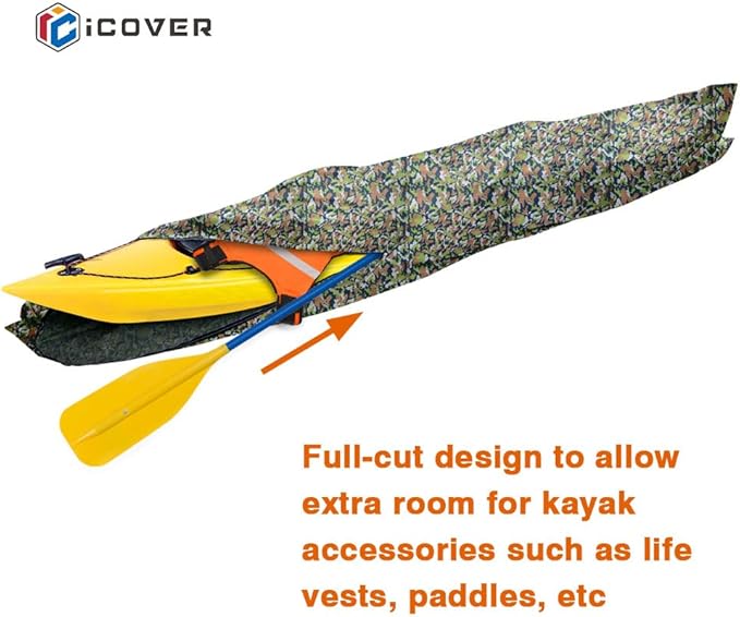 i COVER 13ft Kayak Cover- Water Resistant Heavy Duty Kayaks/Canoe Covers Fits Canoes or Paddleboards up to 13ft Long and Beam Width up to 30in, Camo