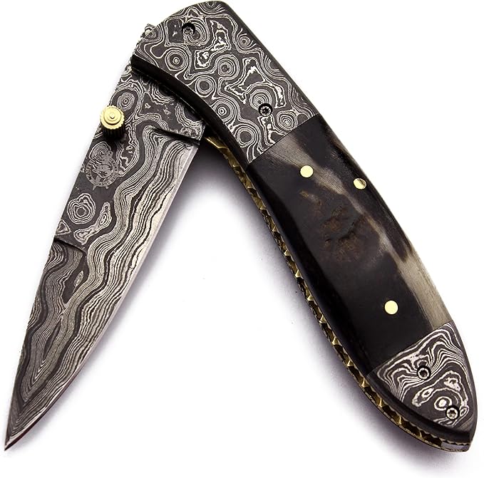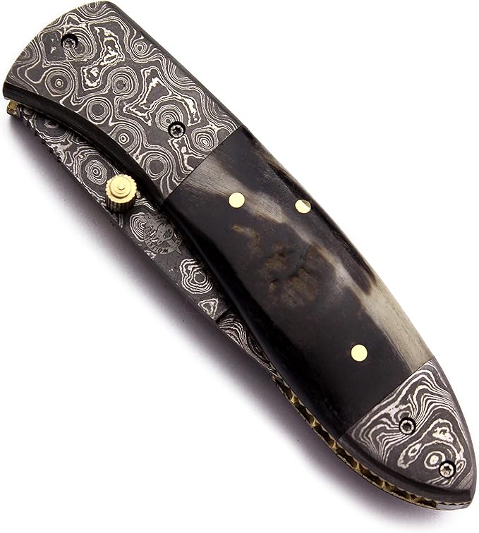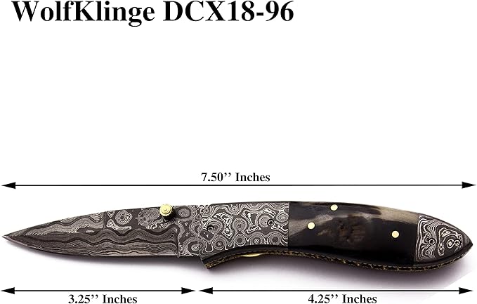 - 🐺: WOLFKlinge Premium Quality Damascus Blade: Expertly forged from 15N25 and 1080 for exceptional toughness. The blade is preserved in oil for optimal storage; clean with a dry cloth before use