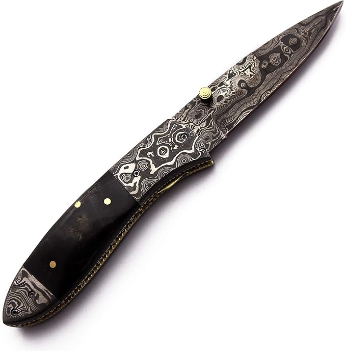 Handmade Damascus Steel Pocket,FoldingKnife Bowie for Hunting,Survival,Camping,Bushcraft and Fishing -Fixed Blade Dagger with Folding Full Tang-Micarta Handle with Cowhide-Leather Sheath-DCX 21 -96