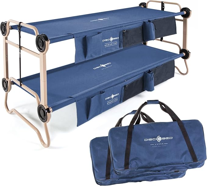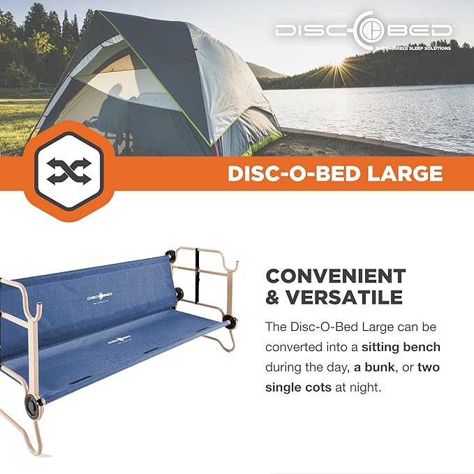 Disc-O-Bed Large Outdoor Convertible 2 Person Bench and Double Camping Cot Portable Bed Bunk System for Adults