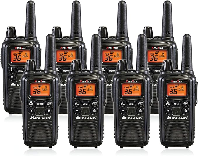 - Included Components : 8 Midland LXT600VP3 radios, 8 belt clips, 8 rechargeable batteries, 4 desktop chargers, 4 AC wall adapters, and owner's manual 8 Midland LXT600VP3 radios, 8 belt clips, 8 rechargeable batteries, 4 desktop chargers, 4 AC wall adapters, and owner's manual