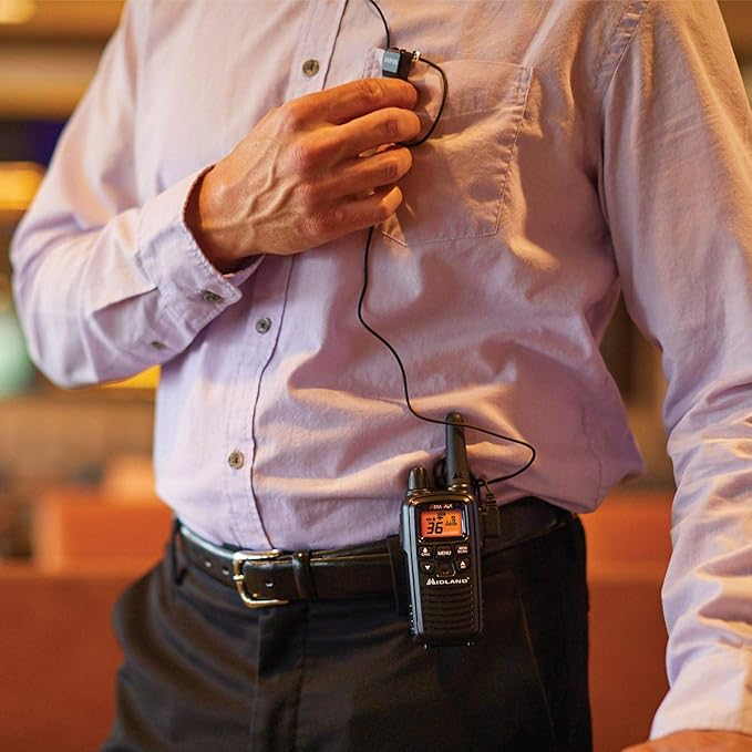 - 30-Mile range - longer range communication in open areas with little or no obstruction. Easy voice and sound activation transmission (evox) with 3 sensitivity levels for hands-free operation.