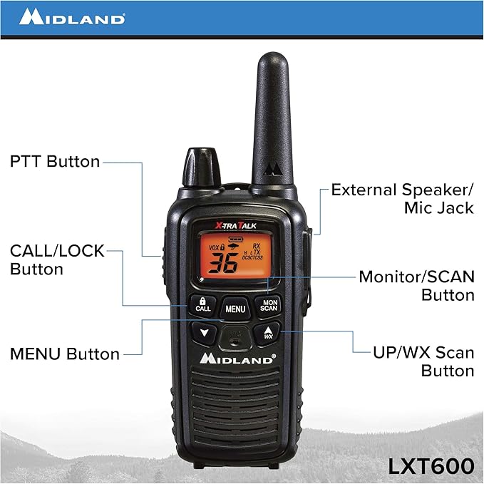 Midland LXT600VP3 36 Channel FRS Two-Way Radio - Up to 30 Mile Range Walkie Talkie - Black (Pack of 12)
