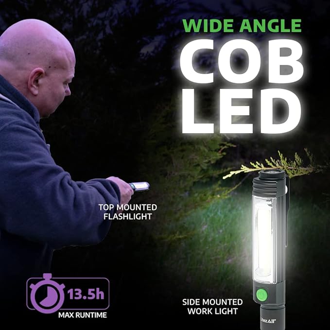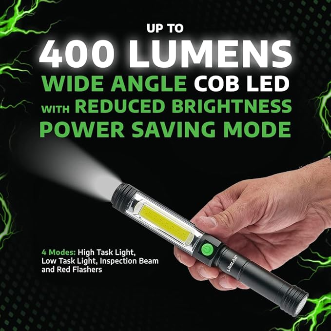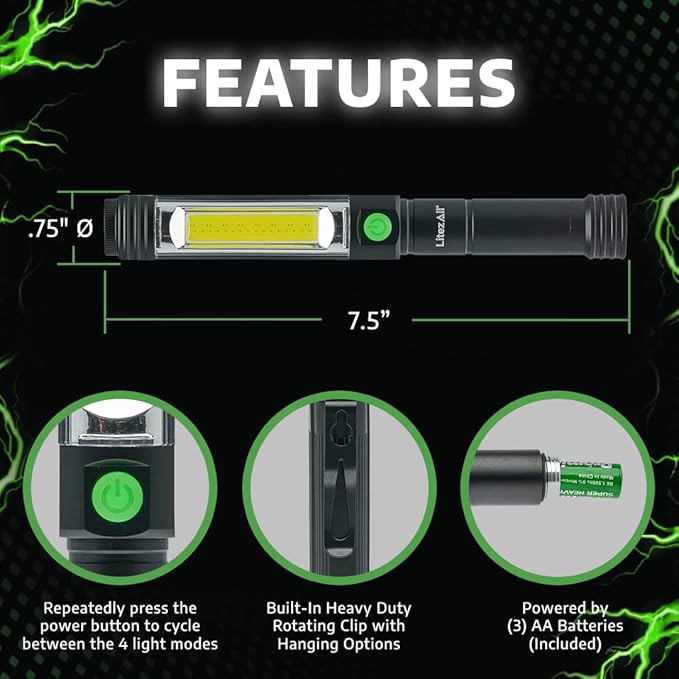 LitezAll Pen Flashlight | Compact and Portable Tactical Pen Light | Battery Powered Pen Light Flashlight, Up to 400 Lumen Wide Angle COB LED Task Light, 3 AA Batteries Included