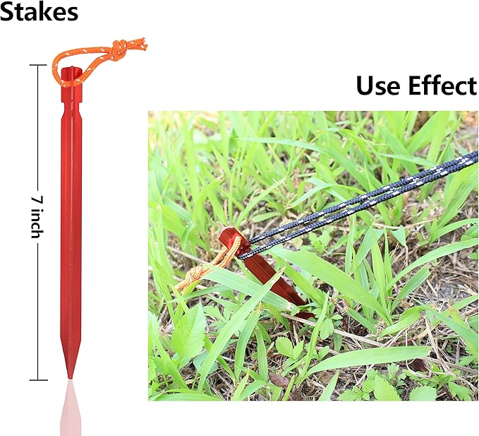 - 【Quick 3-Minute Setup】 Come with cord adjuster for tension adjustment easily; 6 attachment loops allow you adjust the tarp to idea shape suit your natural outdoor environment. Includes 4 aluminum stakes for secure anchoring.