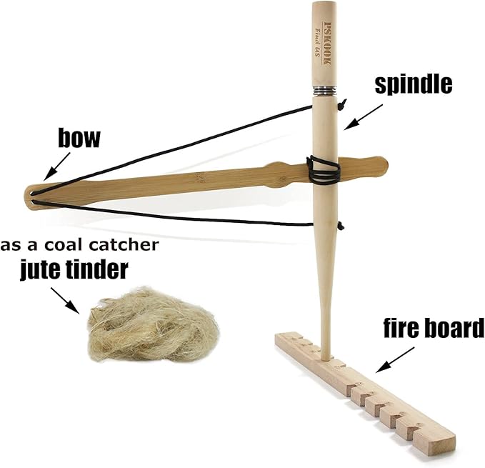 PSKOOK Bow Drill Kit Fire Starter, Primitive Wood, Survival Practice Friction Fire Tool for Scout Outdoor Activity Teaching, Outward Bound Training, Wildness Survival Beginner