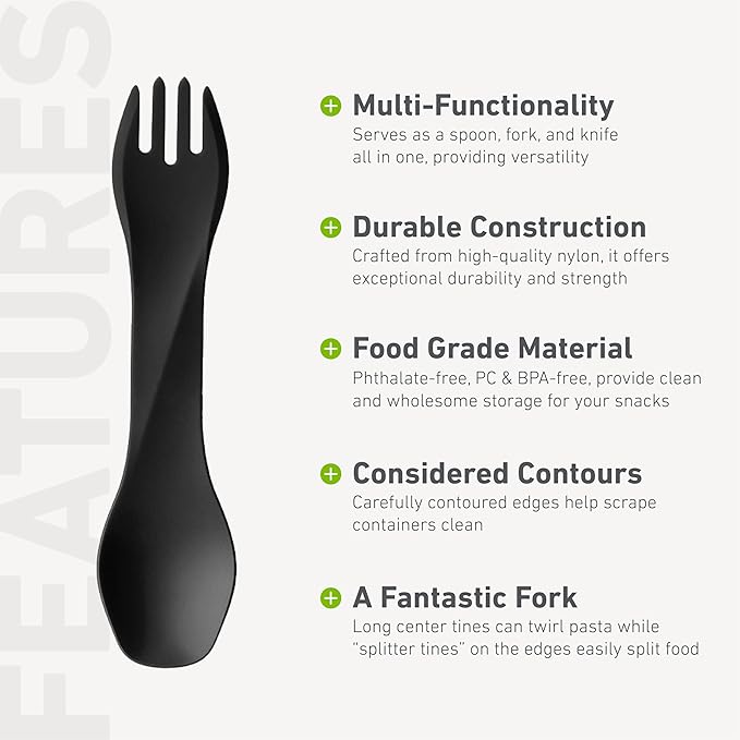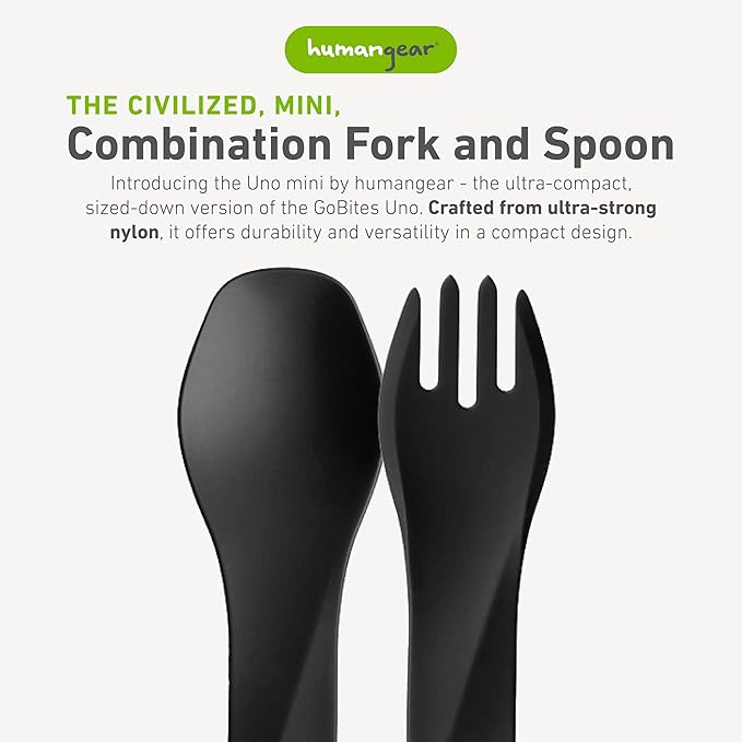 - The Civilized Spork - A minimalist utensil with spoon and fork ends, the humangear GoBites Uno is perfect for travel, camping, work commute, kids, and more