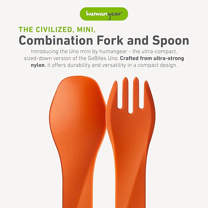 humangear GoBites Uno | Travel & Camping Utensils | Portable & Convertible Dining Ware | Multi-Functional Spork, Orange