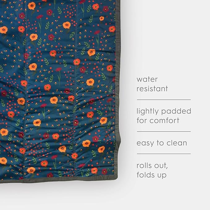 Little Unicorn 5'x5' Outdoor Family Picnic & Beach Blanket | Durable & Water-Resistant Fabric | Compact Fold & Easily Wipes Clean | Zipper Pocket (Midnight Poppy)