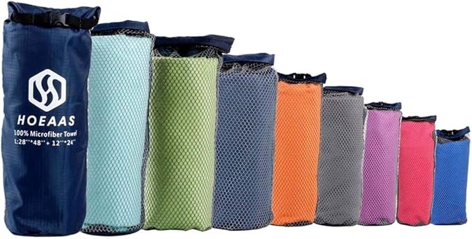 - LIGHTWEIGHT & EASY TO CARRY: Each quick dry towel set with a breathable carry bag and snap hook on the quick-release buckle provides a handy attachment point. The microfiber cloth material makes camping towel very thin. Large size but still super compact, portable and convenient. It can be rolled up small when you don't need to use it. The compact travel towel will nicely fit in your gym bag or backpack. Ideal for outdoor, camping, gym, yoga, hiking, backpacking, fitness and workout.