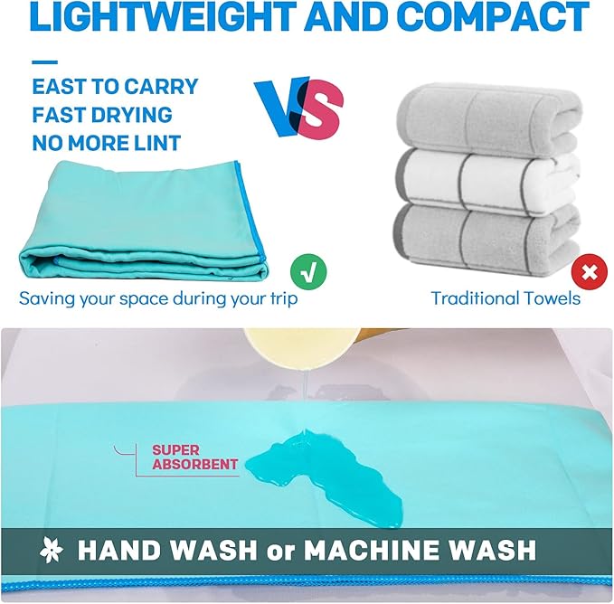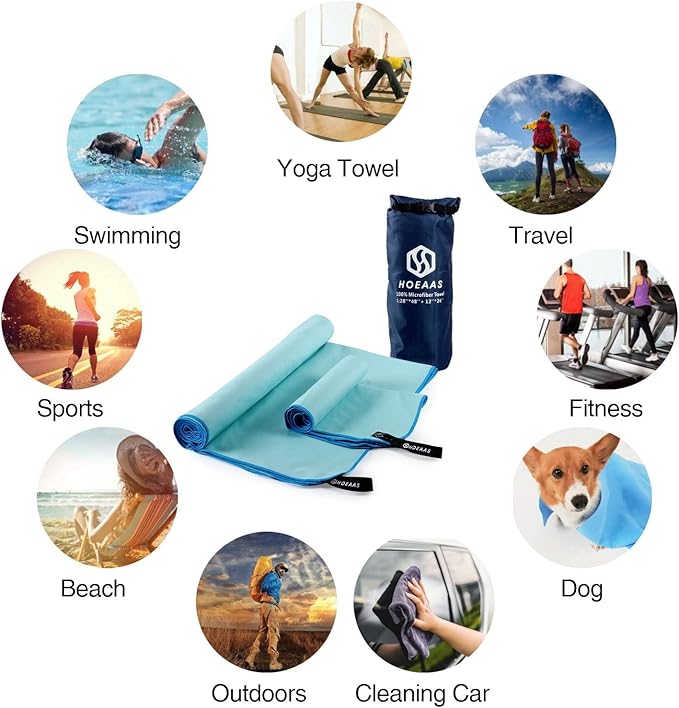 - MULTI-FUCNTIONAL QUICK DRY TOWEL & GIFT IDEA: Lightweight and compact microfiber towel for travel is super versatile for any situation. Such as backpacking, travel, camping, hiking, swimming, yoga, golf, gym, fitness, exercise. Perfect for covers your sun lounger, deck chair or camping undera beach umbrella&sun shelter. The travel towel also looks really fashionable and sporty, which makes it a great gift idea for your family and friends. Of course, if you have any problem, please contact us.