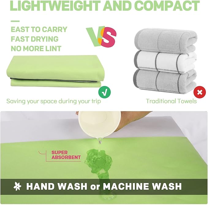 • MULTI-FUCNTIONAL QUICK DRY TOWEL & GIFT IDEA: Lightweight and compact microfiber towel for travel is super versatile for any situation. Such as backpacking, travel, camping, hiking, swimming, yoga, golf, gym, fitness, exercise. Perfect for covers your sun lounger, deck chair or camping undera beach umbrella&sun shelter. The travel towel also looks really fashionable and sporty, which makes it a great gift idea for your family and friends. Of course, if you have any problem, please contact us.