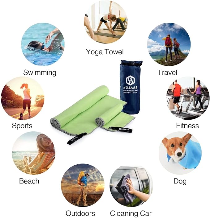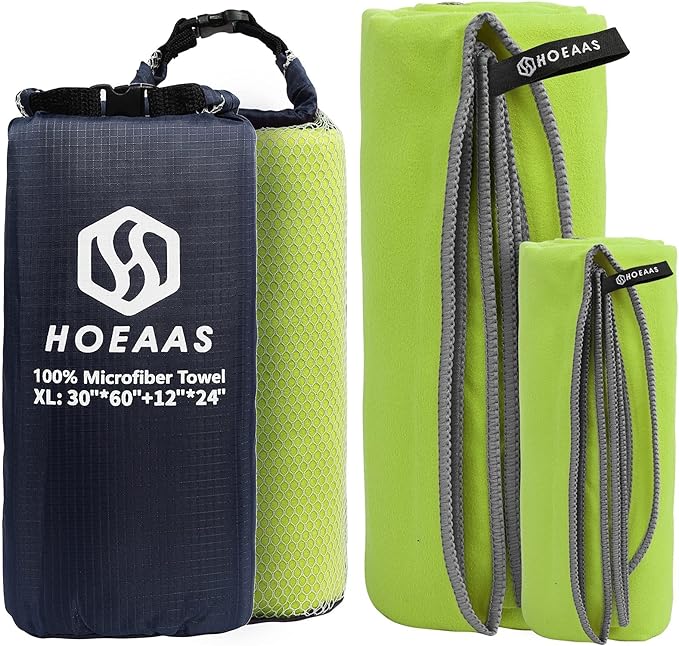 - SUPER ABSORBENT & QUICK DRYING: HOEAAS microfiber camping towel is made of soft and skin-friendly microfiber fabrics, which super absorbent and fast drying. Soaks up 5X its weight in water and dries nearly 10X faster than cotton towel, repeat use it a short time, no bad odors. So you never have to worry about your microfiber beach towels soiling or stinking up the rest of your gear. After dry your sweat or body water, Spread out or hang up the quick dry towel will be dry in minutes!
