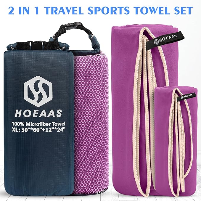 - GREAT OPTIONS & EASY HANG LOOP: Each HOEAAS microfiber towels with a hanging snap loop so it is convenient hanging for quick dry anywhere without blew away. S (2pcs 32 x 16 inch) used as face towel or workout towel. M (40 x 20inch+24 x 12inch) is perfect for sport towel to around your neck. L (48 x 28inch+24 x 12inch), used as bath towel or gym towels. XL(60 x 30inch+24 x 12inch) and XXL towel (72 x 32inch+24 x 12inch) is an ideal choice for yoga mat or beach blanket, perfect for pool and beach.