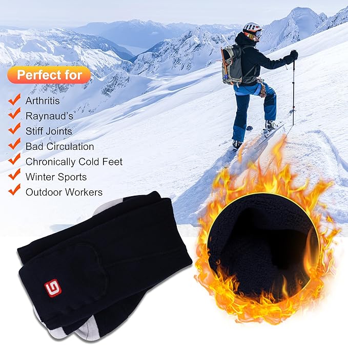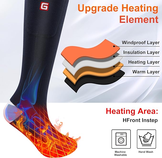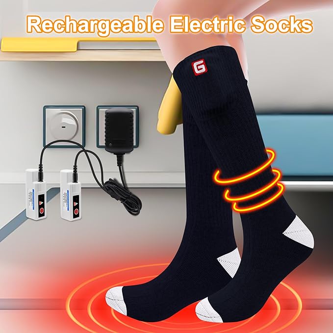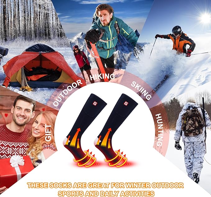 - 🔥Warm up Quickly: The electric heating element of this warm heated socks is recessed in front insteps to help focus heat in the toes to warm your whole feet. 1 rechargeable heated socks equal to several regular socks to keep you warm enough