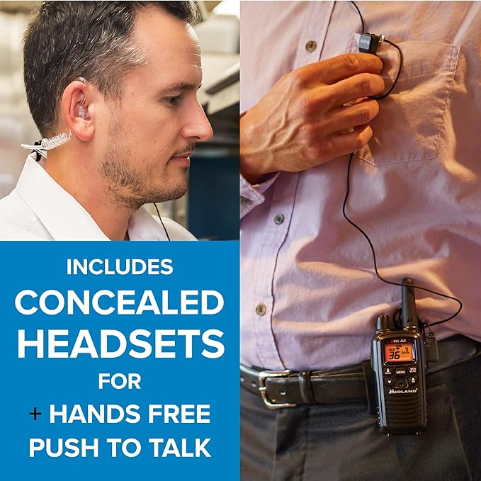 - UP TO 30-MILE RANGE* 2-WAY RADIOS WITH HEADSETS - These walkie-talkies feature 36 FRS (Family Radio Service) channels, along with channel scan to check for activity. Concealed headsets ensure discreet use. *Longer range communication in open areas with little or no obstruction