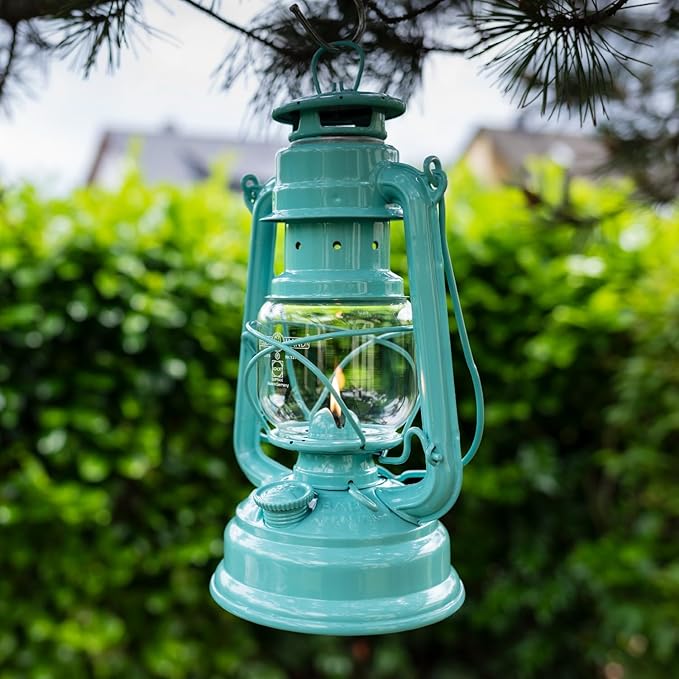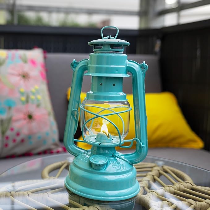 Outdoor Kerosene Fuel Lantern, German Made Weather Resistant Baby Special 276 Galvanized Hurricane Lamp for Camping or Patio, 10 Inches, Pastel Green