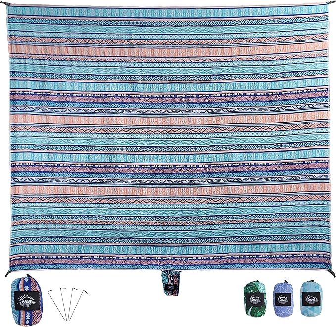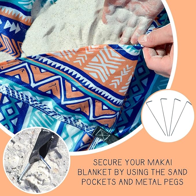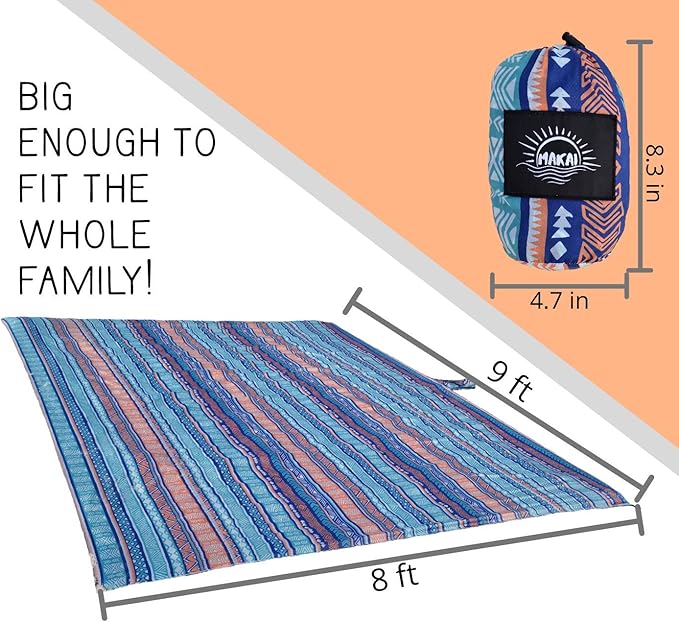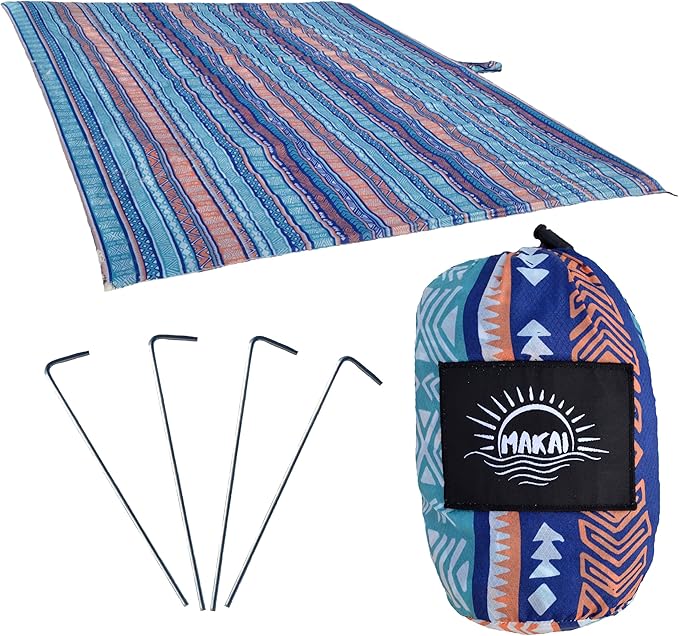 - Superior Quality MAKAI Beach Blanket: Crafted from premium 210T ripstop nylon, this sandproof beach blanket is ultra-durable, lightweight, and breathable. Unlike polyester, our material stays cool under the sun, ensuring a comfortable experience every time.