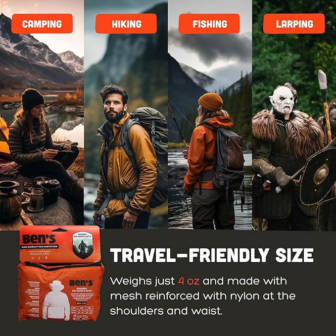 - Portable Insect Protection: With a zippered neck and a pocket that doubles as a stuff sack, Ben's InvisiNet Bug Jacket & Mitts are easy to use and store