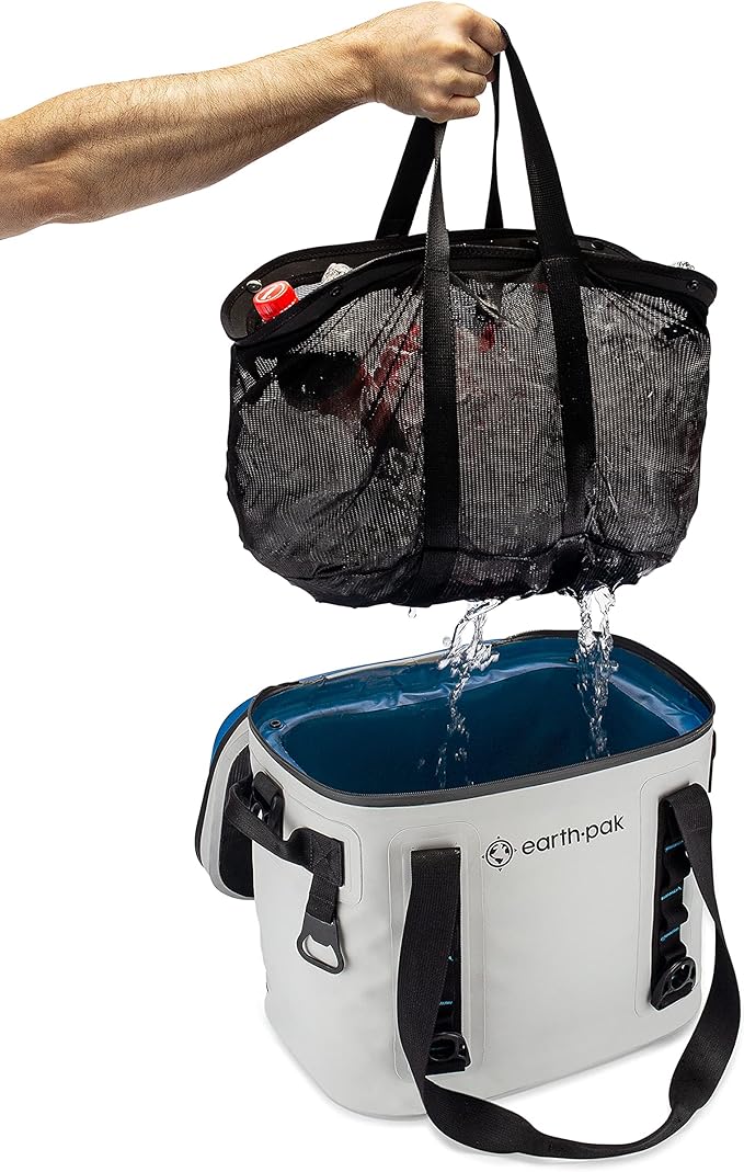 Earth Pak Heavy Duty Waterproof 20-Can Soft Cooler Bag for Camping, Kayaking, Beach Trips - Mesh Bag Insert Included