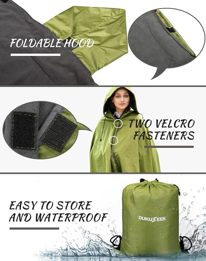 - ✅ 𝗦𝗧𝗔𝗗𝗜𝗨𝗠 𝗕𝗟𝗔𝗡𝗞𝗘𝗧 𝗪𝗜𝗧𝗛 𝗨𝗡𝗜𝗤𝗨𝗘 𝗛𝗢𝗢𝗗𝗘𝗗 𝗗𝗘𝗦𝗜𝗚𝗡:The DUKUSEEK outdoor waterproof stadium blanket for cold weather has an adjustable hood, which can be easily unfolded and converted into a poncho and cloak in rainy days. And it comes with a stuff sack for easy carrying and storage.