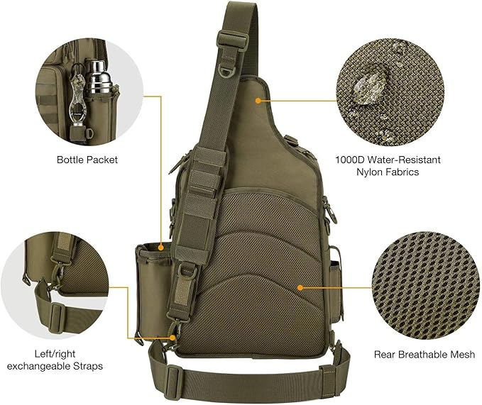 • Adjustable & Detachable Strap: Two left/right exchangeable, adjustable, and detachable shoulder straps make it easy to use this bag as a sling shoulder bag, backpack, handbag, chest bag, fishing tackle bag, or traveling bag. With two rod belts to hold your rods, the main strap length can be extended up to 51.2'', while the associate strap can be extended to 36.2''