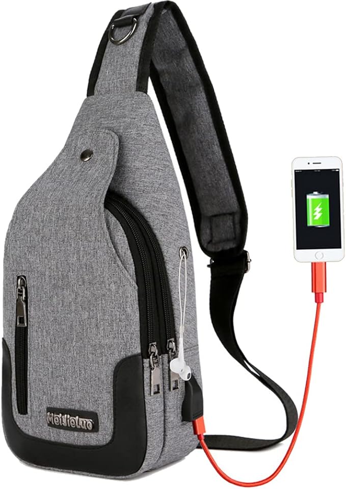 - PROFESSIONAL DESIGN - Our medium size sling backpack bag with usb charging port can be folded as a small size pack and expanded to a large bag. Lightweight(0.66lb) and portable, great for the gym and travel. Compared with other ordinary oversized sling bag, our chest bag adopts upgraded design: reinforced strap, flawless hardware zipper bag and perfect workmanship make it your great choice! Featured with front snap fastener to protect your stuff more safely and D ring hang buckle for hanging.