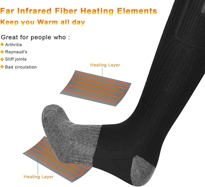 - 【Improve Blood Circulation】it is a perfect solution for those chilly winter nights and days.SNOW DEER heated socks are used by many people for a variety of different reasons ranging from working in cold conditions, hunting,fishing,skiing,motorcycling,hiking.and even just having cold feet around the house.
