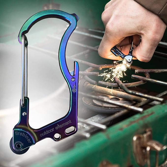 - GREAT FOR CAMPING & HIKING: The Firebiner's versatile design is great for starting a fire, clipping to a backpack, carrying keys, opening bottles while out and about, and much more...