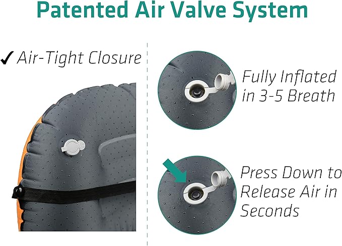 - Ease Of Use! With the simple click of a button, Inflate pillow by mouth with approximately 5-8 breaths. Once you are done you can conveniently deflate the pillow with the Quick Deflate feature which rapidly releases air after use in only seconds. With the unique technology in this compact and light pillow, you are able to adjust firmness to your personal sleep preference. You can Rest easy with our 100% Satisfaction Guarantee!