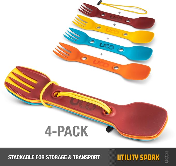 UCO Utility Spork 3-in-1 Combo Spoon-Fork-Knife Camping Utensil, 4-Pack